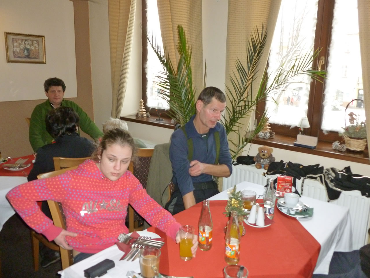 Na Javorníku jsme se v malé horské chatě lehce občerstvili, popřáli Aničce Žáčkové k narozeninám a pak se vydali směr Frenštát s tím, že u můstků zajdem na jídlo. Hospoda byla zavřená, u Žabáka bylo plno a nakonec jsme se najedli ve Frenštátě na náměstí.