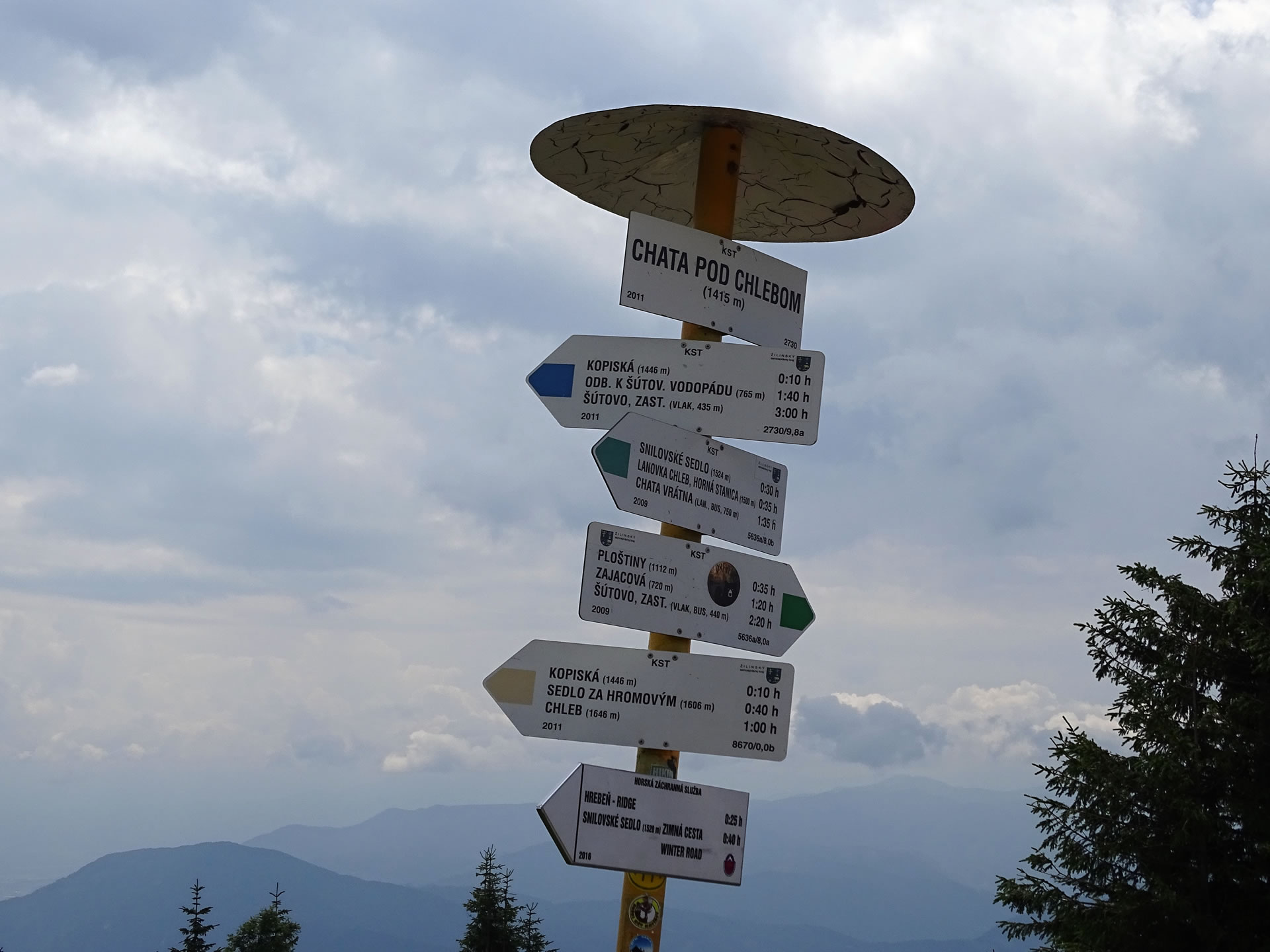 Tož přesto, že výšlap na Velký Rozsutec patří podle mě k těm nejoblíbenějším, byla letošní účast- zřejmě i vzhledem k předpovědi počasí- rekordně nízká. Ve Štefanové se nás sešlo pouhých 11 mužů, žen a dětí. Navíc jsme se ještě rozdělili na dvě skupiny - jedna, pětičlenná, ve složení Zdeňka, Rosťa, Kryštůfek, Sylva a Mareček se vydali klasickou cestou přes Horné diery na Velký Rozsutec, druhá-šestičlenná skupina ve složení Alenka, Jaruška, Karel, Honza, Tomáš a Radim jsme se vyvezli lanovkou do Snilovského sedla a udělali si pohodovou trasu Velký Kriváň-Chata pod Chlebom-Poludňový grúň a zpět do Štefanové. Počasí bylo velmi proměnlivé, ale zdaleka se nenaplnily chmurné předpovědi expertů z "yr.no". Naopak-neustále se střídající temné mraky a mlha se zářícím sluníčkem a modrou oblohou nám nabídly jedinečné pohledy na tuto nádhernou část Malé Fatry... Později jsme se dozvěděli, že skupina, která se vydala dobýt Velký Rozsutec, to musela pár metrů pod vrcholem vzdát a z obav před hrozící bouřkou se vrátit zpět - což bylo velmi moudré - neznám moc turistů, kteří by si sedli k vrcholovému, tři metry vysokému kovovému kříži a kochali se pohledem na blesky...:-) Důležité je, že se všichni ve zdraví vrátili domů a věřím, že si všichni užili a naplno vychutnali tento krásný den!